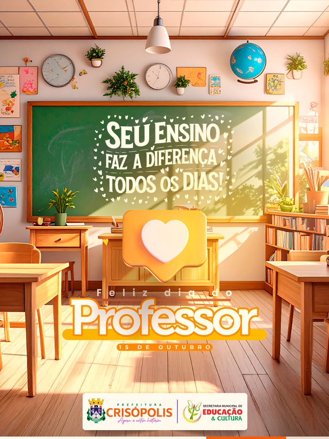 Em especial, parabenizamos os professores do nosso município, que com compromisso e esforço contribuem para o futuro das nossas crianças e jovens.