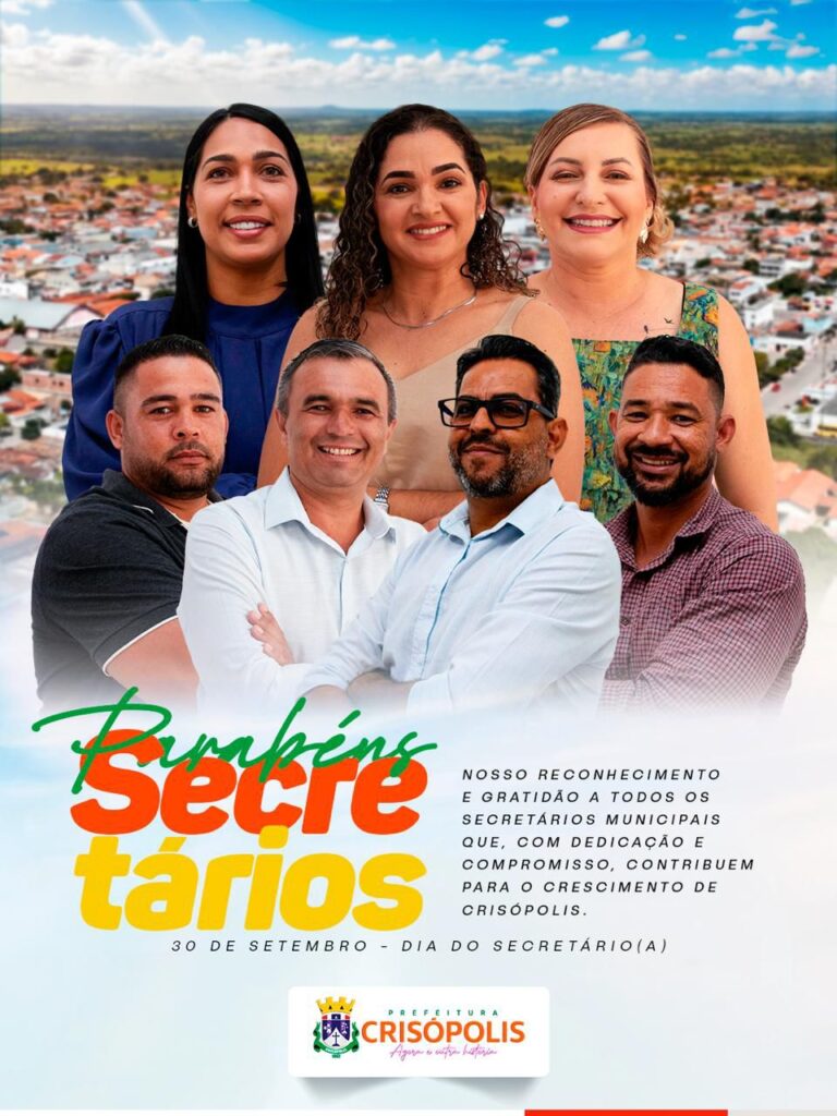 A Gestão Municipal de Crisópolis reconhece que o trabalho dos nossos SECRETÁRIOS é essencial para o sucesso da administração. Só conseguimos avançar porque ninguém constrói nada sozinho: trabalhamos juntos, crescendo profissionalmente e pessoalmente em cada desafio.