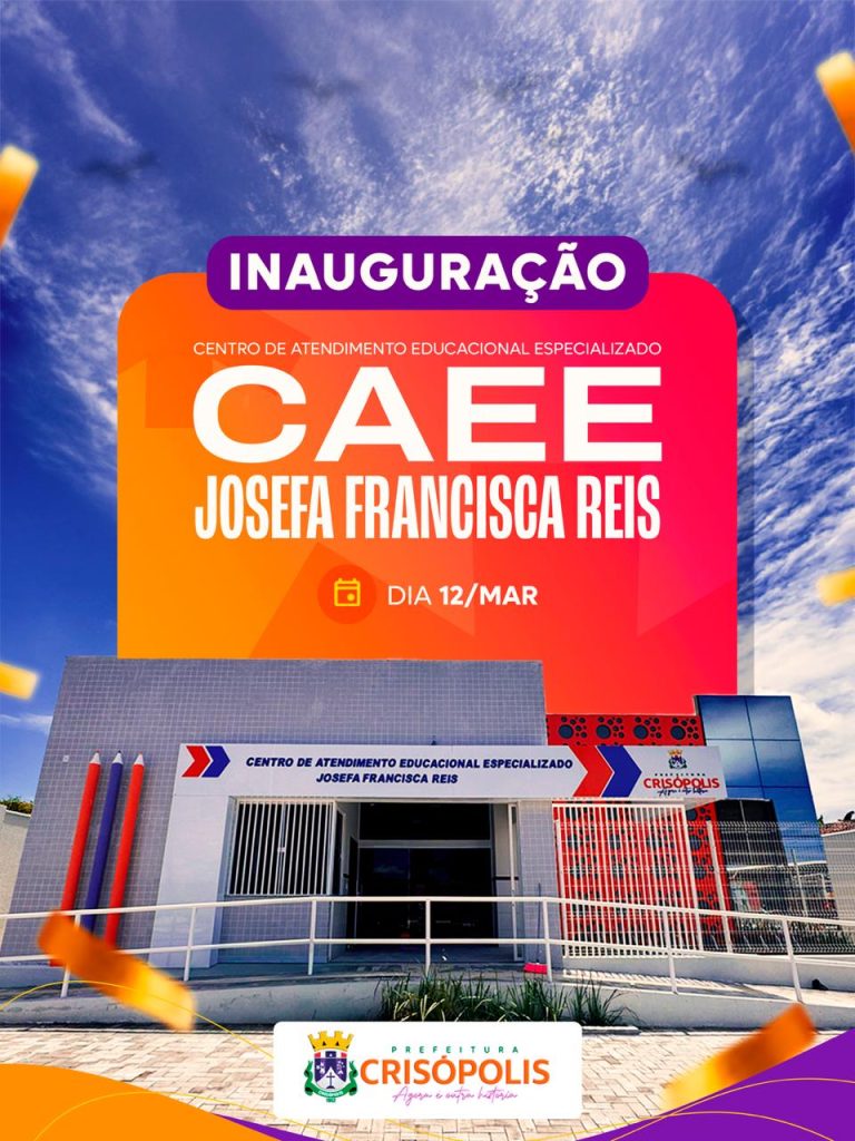 Como parte das comemorações pelo aniversário de Crisópolis, a Prefeitura realiza no dia 12 de março a inauguração do Centro de Atendimento Educacional Especializado (CAEE) Josefa Francisca Reis.