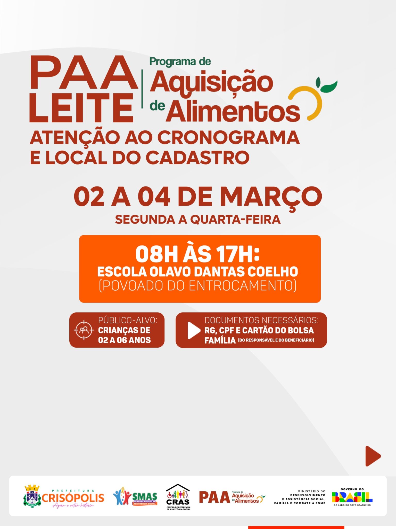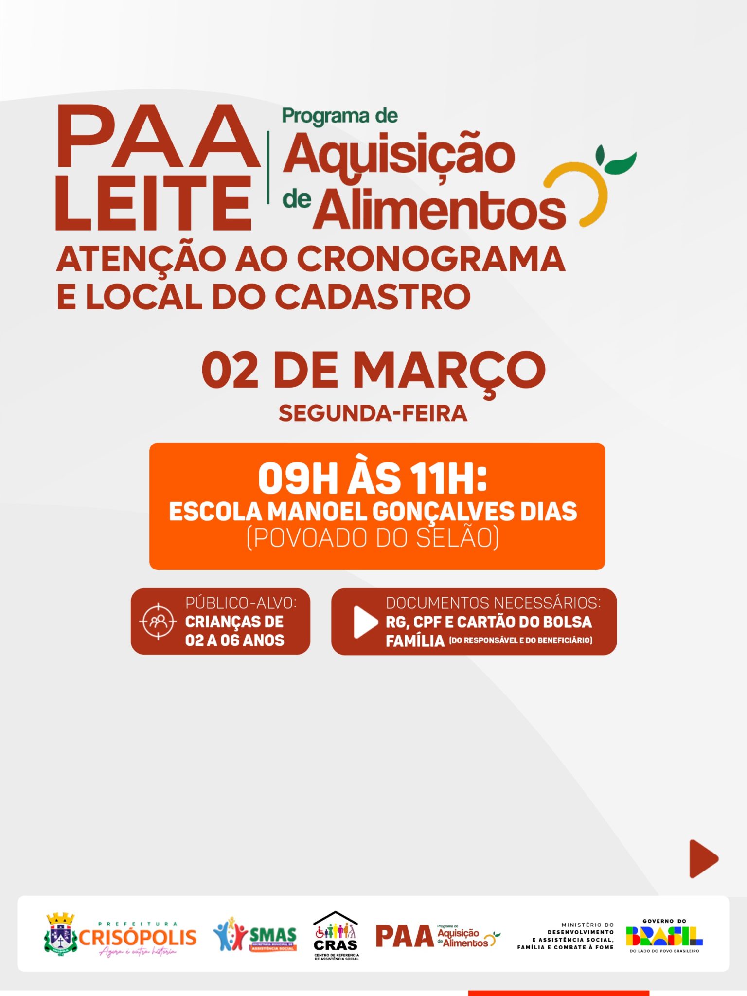 PAA LEITE-PROGRAMA DE AQUISIÇÃO DE ALIMENTOS, CLIQUE NA IMAGEM E VEJA A DATA DA SUA ESCOLA!